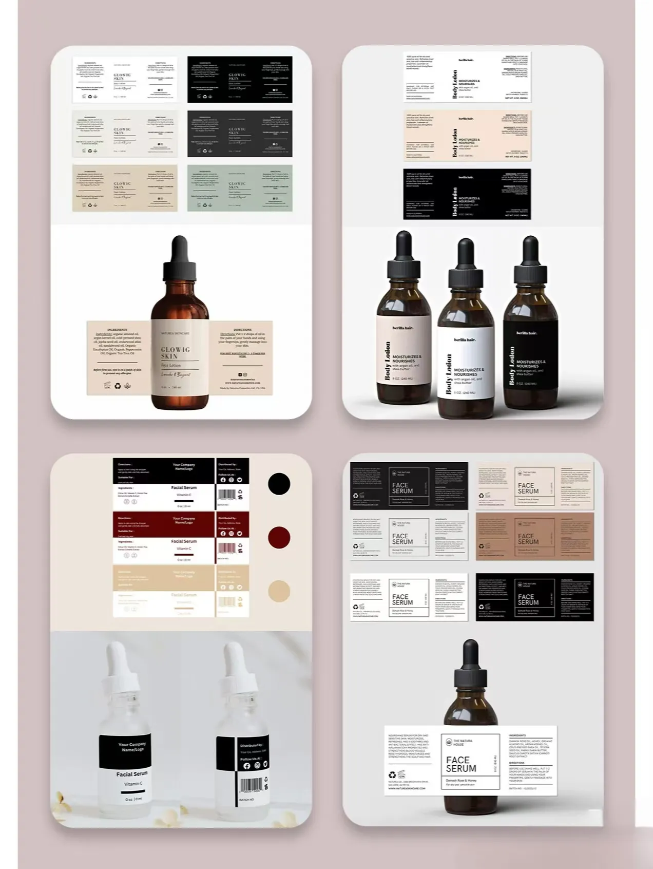 ЈОЈО Пацк'сЕтикете за флаше од 20 млсу прецизно исечене, потпуно прилагођене лепљиве етикете дизајниране искључиво за посуде малог капацитета од 20 мл, које се широко користе за етерична уља, серуме за негу коже, козметичке узорке, тоалетне потрепштине за путовања и мини течне додатке. Скројене да одговарају цилиндричним, квадратним или овалним површинама боца од 20 мл, ове етикете комбинују функционалну адхезију са привлачном естетиком како би побољшале брендирање производа и привлачност на полицама.