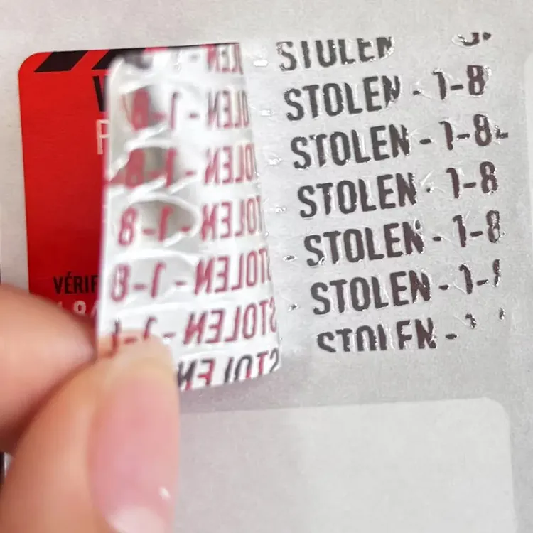 2 Физичке карактеристике:Неке анти-фалсифитивне налепнице користе физичке карактеристике посебних материјала, као што су крхкост крхког папира или оптичких карактеристика ласерских материјала, чинећи налепнице имају јединствене карактеристике против фалсификовања. Ове физичке карактеристике се не могу поновити конвенционалним средствима, чиме се постижу анти-фалсификоване сврхе.