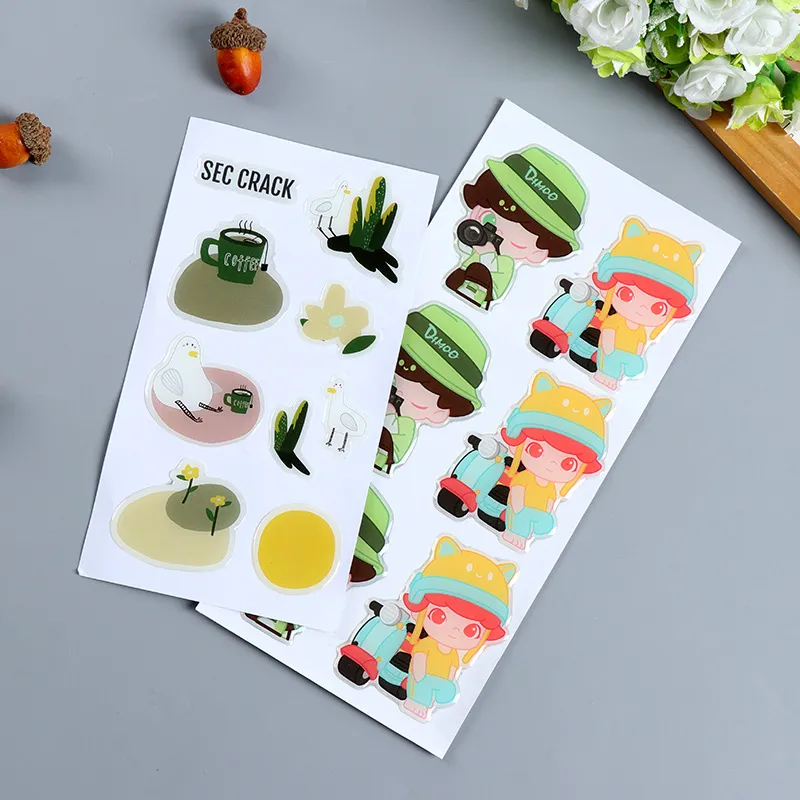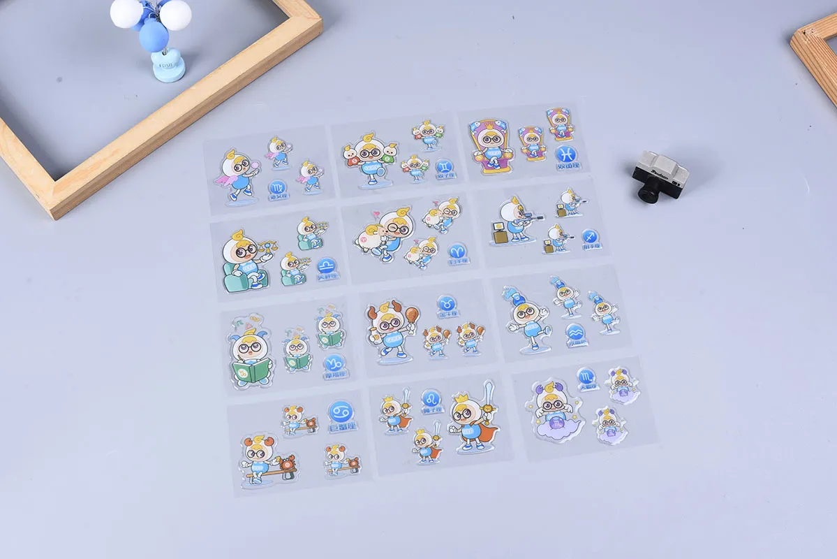 Цртани налепнице Епоксидне смоле! Изглед је јединствен. Након личења епоксидне смоле, кристално је чист као кристал. Налепнице имају снажан тродимензионални ефекат, одмах унапређују оцену. Штавише, то се такође може направити у ласерском ефекту. Заслепљујуће светло ласера у комбинацији са текстуром кристалне смоле ствара изузетно запањујући визуелни ефекат. Било да се користи за промоцију или украс за производ, може чврсто да привуче пажњу свих.