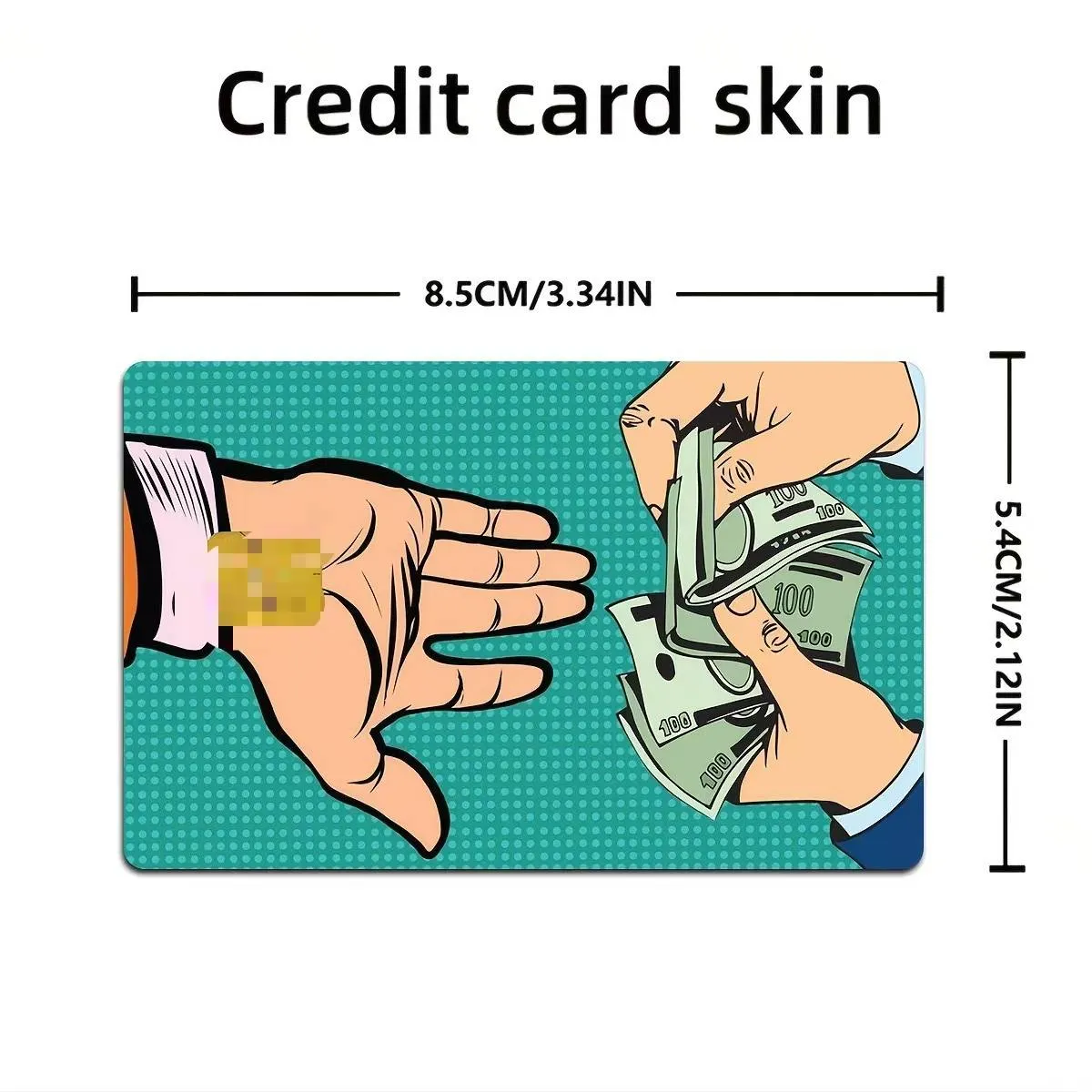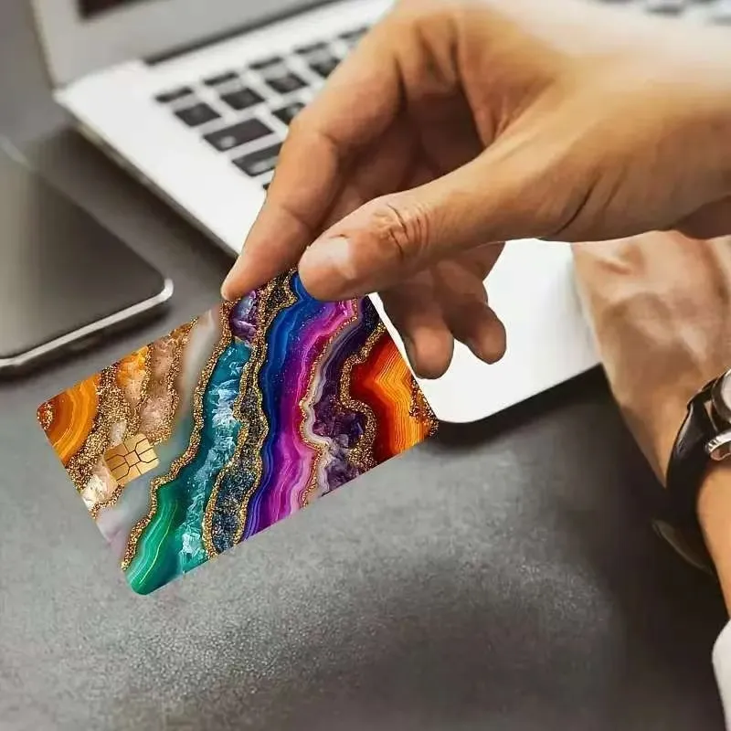 Најновије продаване налепнице за кожу кредитних картица су површински филм посебно дизајниран за кредитне картице. Лаган је и има јаку адхезију. Може тачно да одговара величини кредитне картице. Може и украсити изглед картице и пружити основну заштиту за картицу.