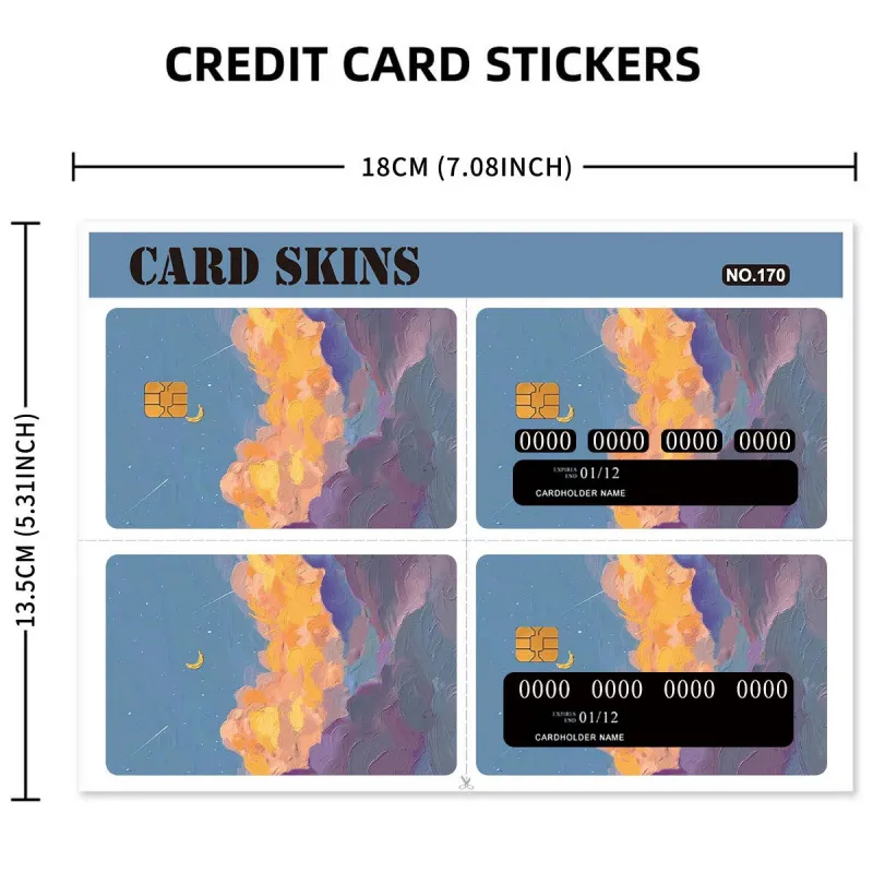 Налепнице за кредитне картицесу персонализоване украсне налепнице које се могу заглавити на површини кредитних картица. Израђени су од ултра-танких и еколошки прихватљивих материјала и не утичу на нормално пребијање картице или читање чипа. Не само да омогућава кредитне картице да покаже јединствени стил, али неки производи такође имају практичне функције као што су анти-прелазни прстом (РФИД блокирање), а истовремено прилагођавање логотипа подршке. То је производ који комбинује лепоту и практичност.