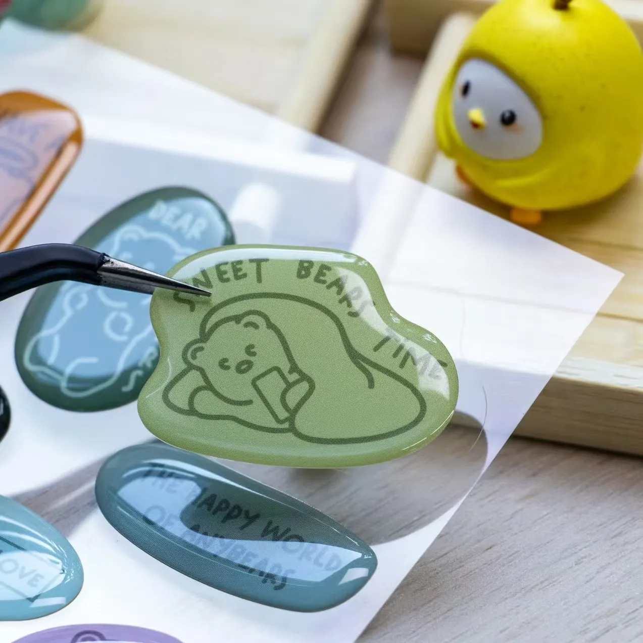 А1: Користимо врхунске сировине: издржљиве лепљиве подлоге (винил, ПЕТ или папир), еколошки прихватљиво мастило за штампање високе дефиниције и епоксидну смолу индустријског квалитета. Смола обезбеђује да 3Д налепнице са куполом имају јаку отпорност на гребање и дуготрајан сјај.