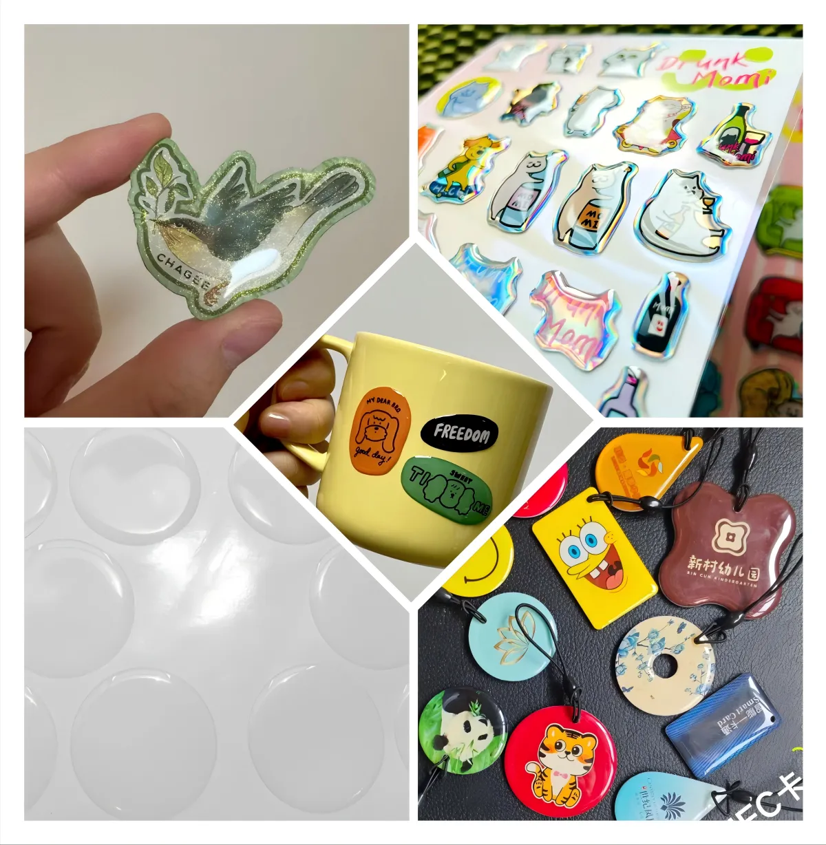 А3: Налепнице од епоксидне смоле се широко користе у индустријама као што су логотипи брендова за електронске производе, налепнице упозорења за индустријску опрему, украсне налепнице за аутомобилске делове, персонализоване налепнице за поклоне и идентификационе налепнице за медицинске уређаје.