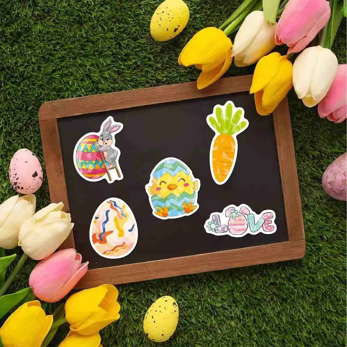 Погодно за различите ускршње намене: мале налепнице за јаја или чоколадне љуске, средње за поклон кутије и корпе и велике за излоге. Лако се уклања без остатака са површина као што су стакло, пластика или дрво.