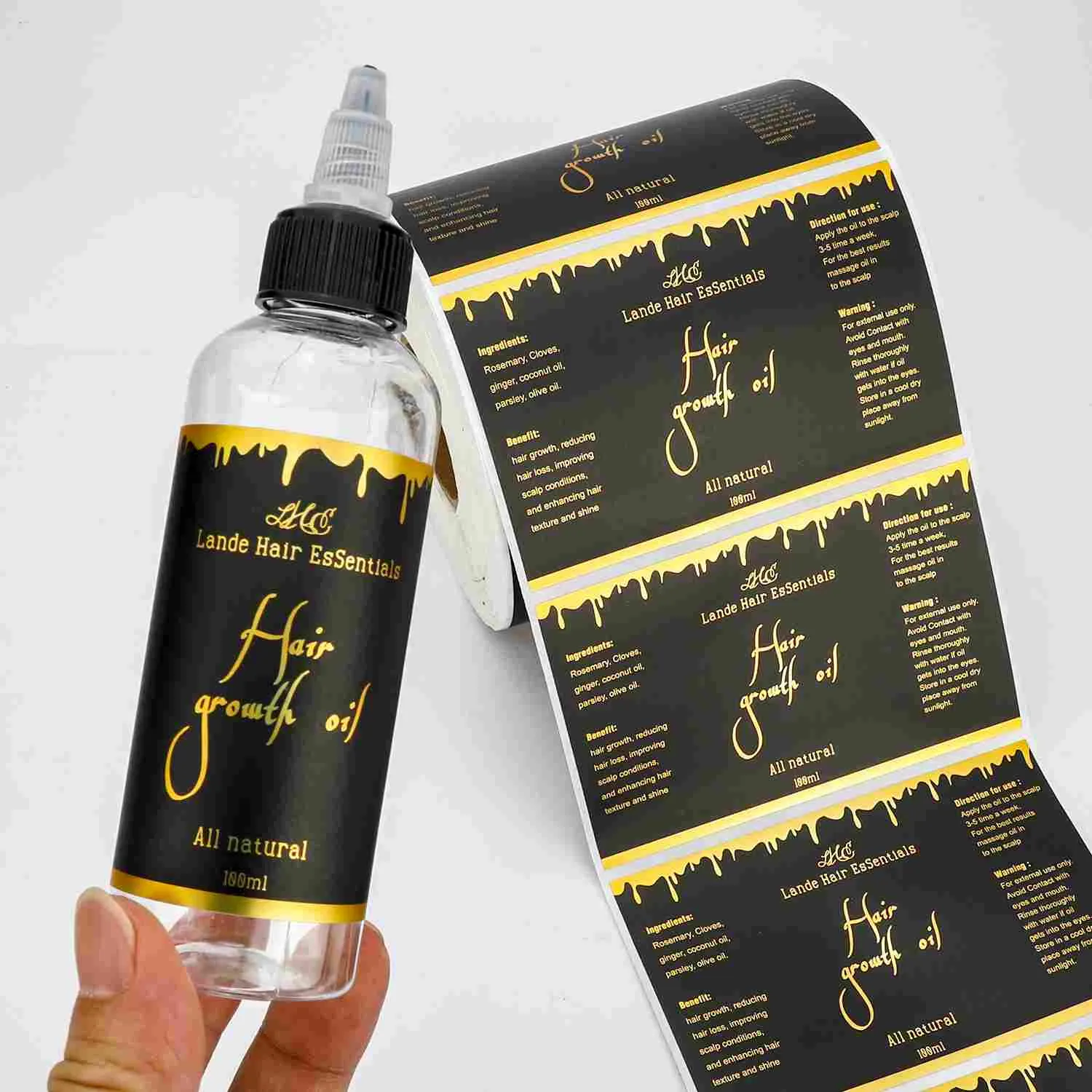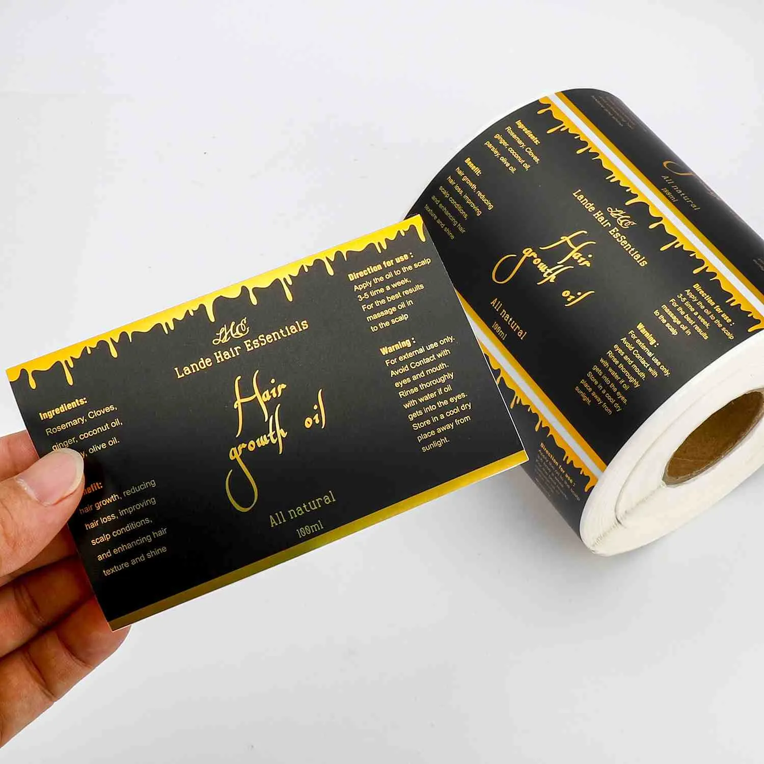Етикете од златне фолије које производи наша компанија углавном усвајају технологију штампе високе прецизности златном фолијом. Метална фолија је прецизно штампана на површини подлоге, стварајући врхунску металну текстуру, наглашавајући стил бренда. Производ подржава персонализовано прилагођавање у пуној димензији, покривање шаблона, текста, величине, облика, материјала и боје златне фолије. Може се широко применити на паковање, идентификацију и заптивање различитих производа као што су пића, козметика, итд., помажући брендовима да побољшају препознатљивост и вредност производа, истовремено узимајући у обзир естетику и практичност.