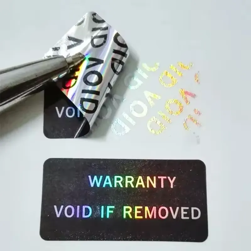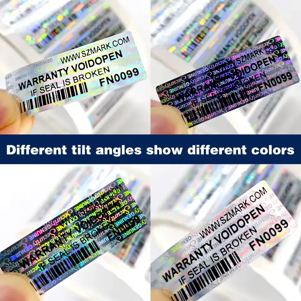 Холограмске сигурносне налепницеприказују 3Д, динамичке или вишеслојне оптичке ефекте под светлом, које је тешко поновити без професионалне опреме. Већина је дизајнирана са својствима која су очигледна због неовлашћеног отварања – ломе се, остављају остатке или показују ознаку „ВОИД“ када се ољуште. Уобичајени материјали укључују полиестер или филм, интегрисан са холографским фолијама или дифракционим решеткама током производње.