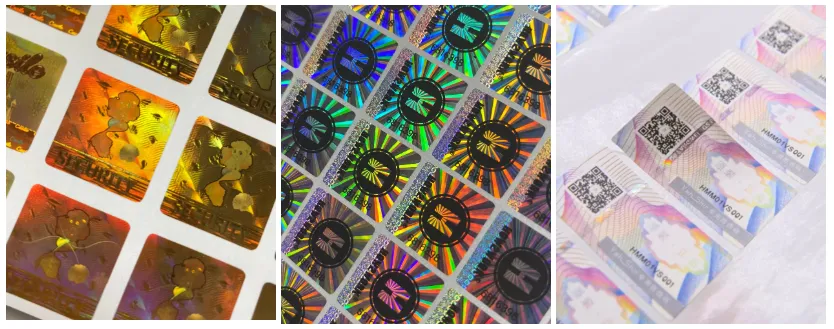 4. Холографске налепнице против фалсификовања: ова врста етикете садржи вишеслојну рефлектујућу површину, може из различитих углова показати слику и образац промене, тешко се реплицирати и може се користити као визуелни знак против фалсификовања.