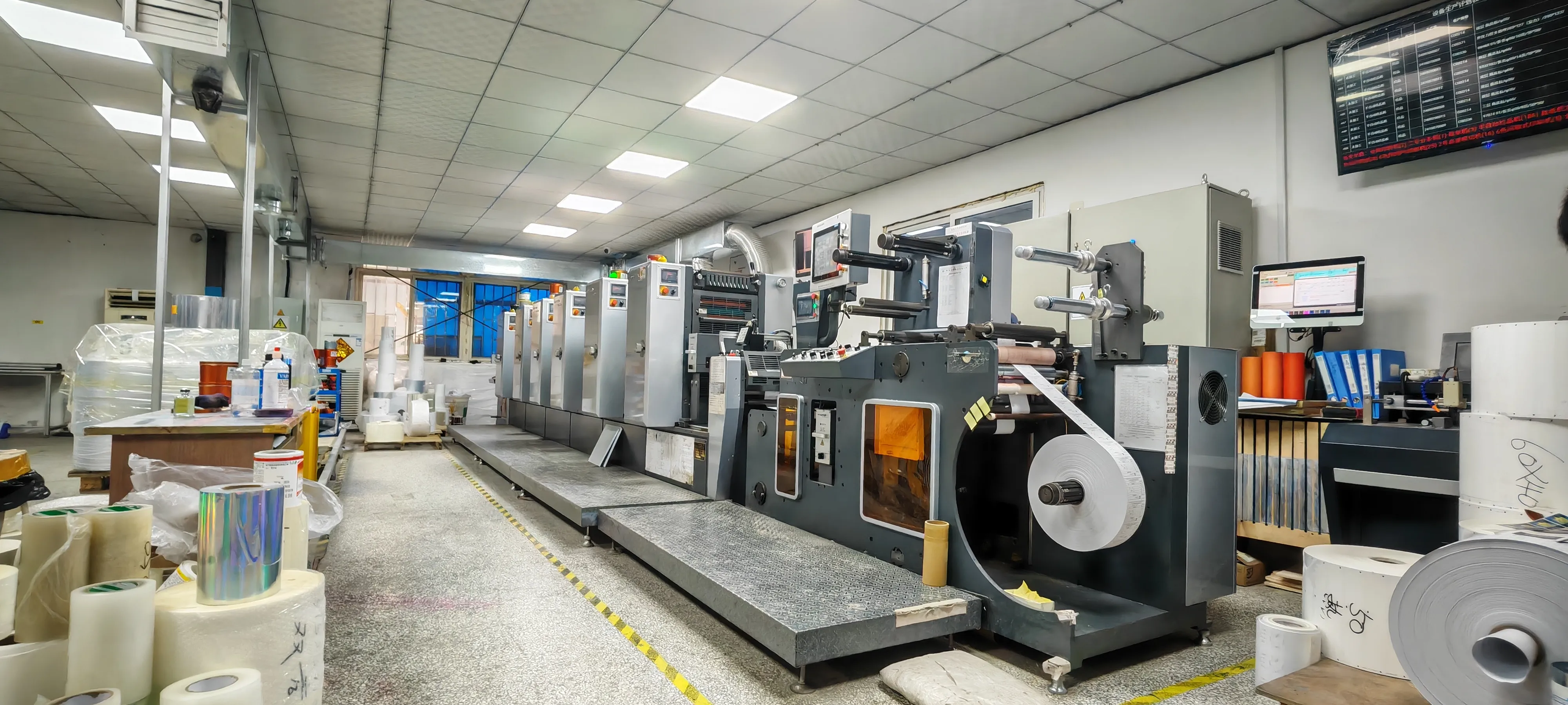 Компанија Јојо има фабрику која покрива површину од 18.000 квадратних метара, са 7 потпуно аутоматских производних линија, опремљених низом напредне опреме, као што су ЦМИК машине за штампање, дигиталне машине за штампање, машине за преношење, преносни стројеви и машине за премотавање, а машине за премотавање и резање папирних машина. Било да је то велико предузеће или мало и средње предузеће, можемо да испунимо потребе њихове ОЕМ-а и ОДМ-а.