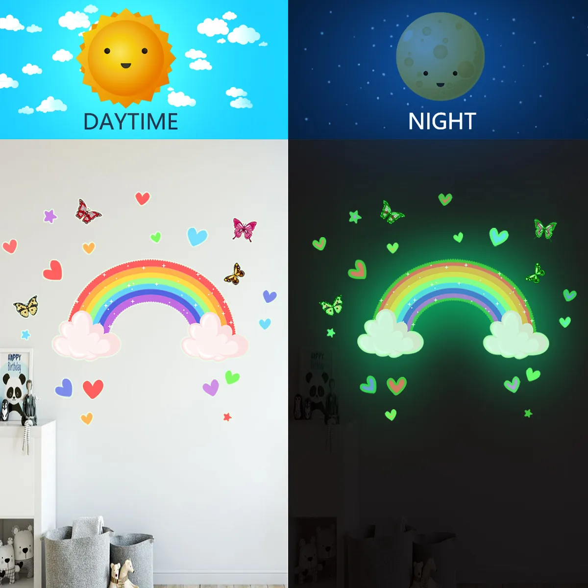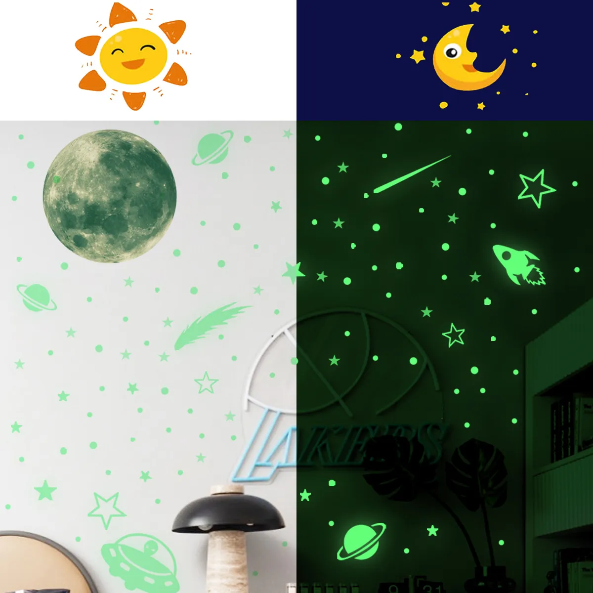 Светлосни зидни налепнице, Нема потребе да бушите рупе и нећете оштетити зид. Само их примените лагано и можете уживати у меком светлосној снази ноћу. То током дана апсорбује светло и светли се светли ноћу. Уништили дизајн је сигуран и еколошки прихватљив, што га чини погодним за породице са бебама. Узорак је јасан и ивице су у реду. Може се чврсто поправити на плафону или зиду. Неће оставити лепљење док се растргне и лако је заменити. Нема потребе за компликованим комбинацијама. Само неколико једноставних налепница може дати простор потпуно нов изглед.