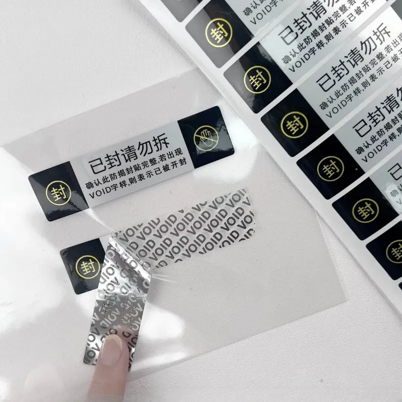 Заједничке безбедносне етикете су љуске налепнице. У поређењу са другим налепницама, ова врста ознаке има истакнуту предност: Једном када се налепница оструже, не може се поново користити. Пилинг уништава етикету, али његова цена прераде је релативно већа од оне од огреботине.