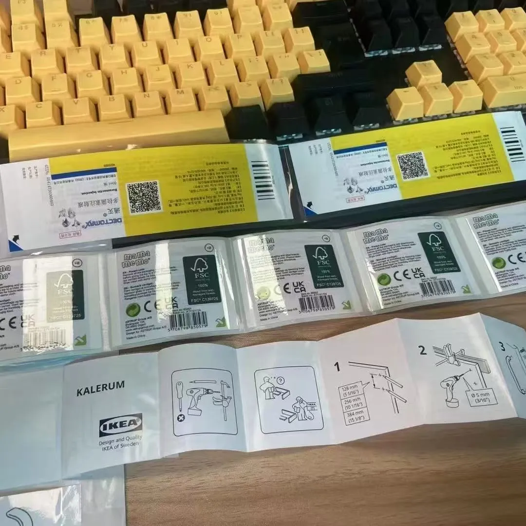 Пресавијене етикете пружају неколико пута већи простор за штампање у односу на површину покривености на изузетно ограниченим површинама производа, као што су тела боца, епрувете и мали електронски уређаји. Информације о пресавијеним етикетама су слојевите: крајњи слој су сажете информације, као што су назив производа и логотип, а унутрашњи слој су детаљне информације, као што су листа састојака, упутства за употребу, бар код, вишејезични превод итд.
