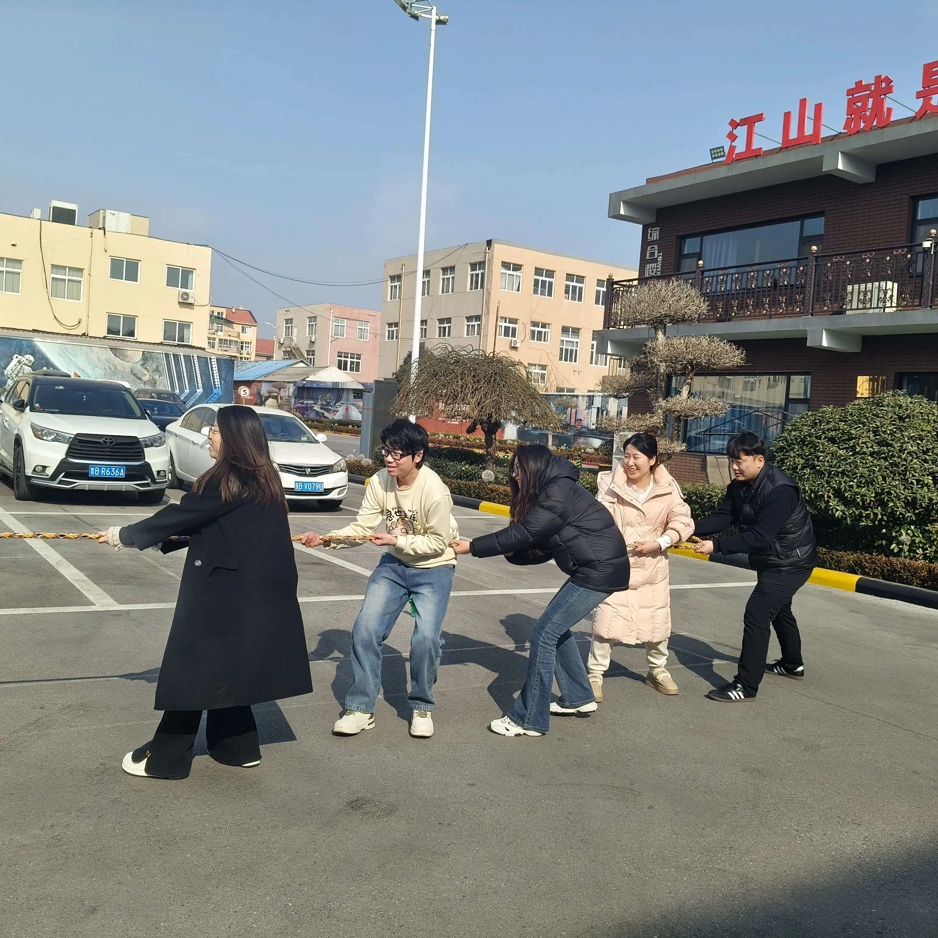 Врхунац је био потезање конопа, где је шеф Гао обезбедио дебело уже и организовао особље у такмичарске тимове. Запослени су учествовали са великим ентузијазмом, вући свом снагом јер ниједна страна није била вољна да попусти, демонстрирајући тимски рад и одлучност.