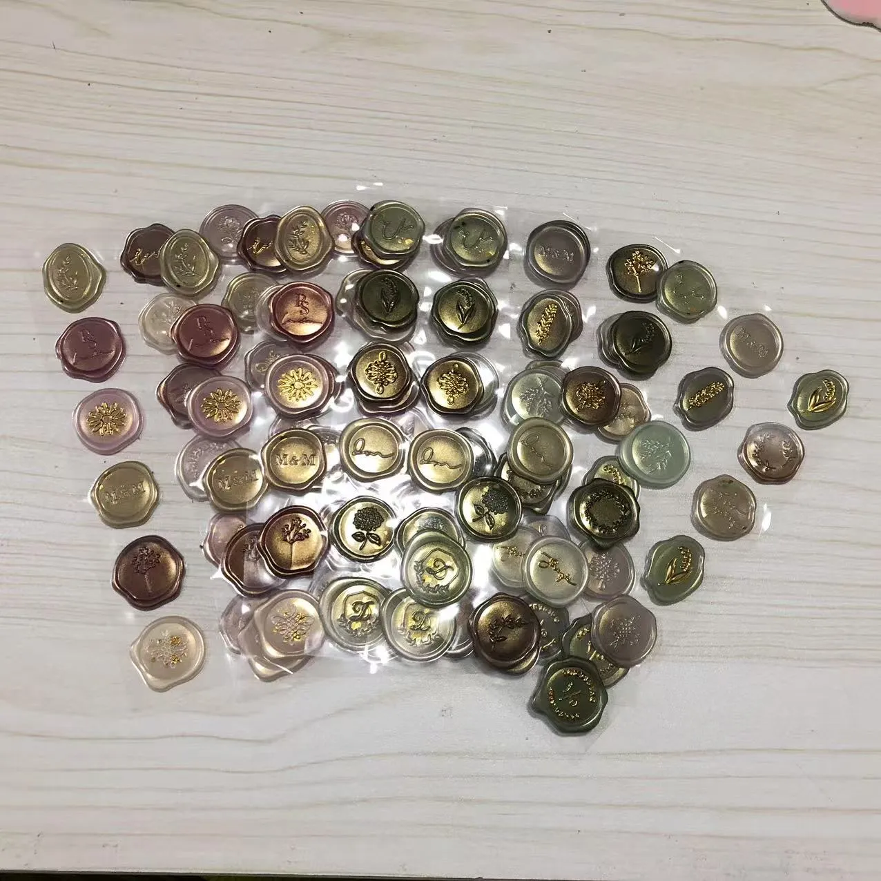Производ је доступан у различитим спецификацијама, са пречникима у распону од 13 мм до 30 мм, и долази у низу боја, укључујући антикну бронзану, бордо, златну и сребрну, задовољавајући различите декоративне потребе. Било да се користе за позивнице за венчање, пословна писма или белешке, они дају јединствен уметнички додир.