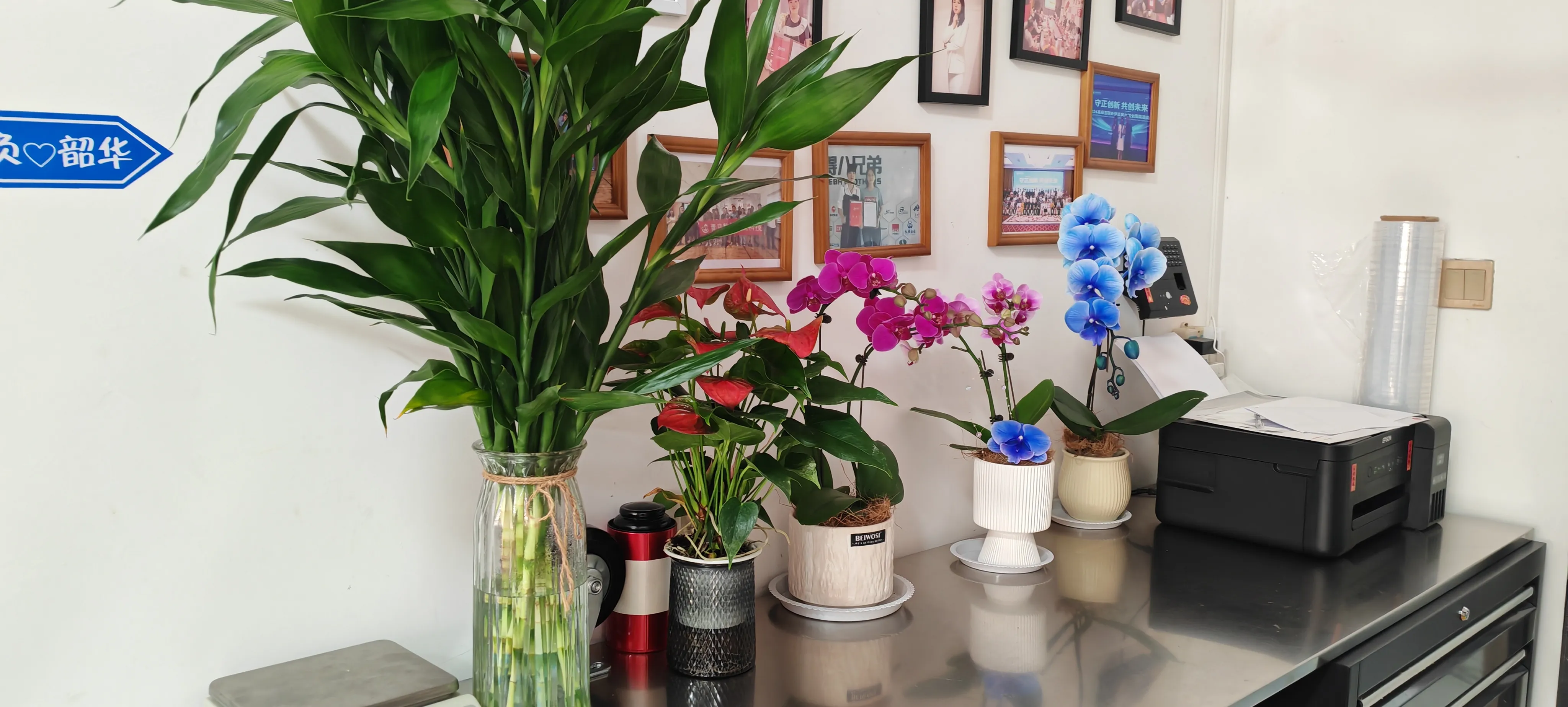 Госпођа Мен, менаџер спољне трговине, са осмехом је рекла: „Окружење у канцеларији је раније било чисто, али му је недостајао осећај за природу. Сада са декорацијом овог цвећа и зелених биљака, цео простор је постао живахан. Гледајући зелене биљке у паузама на послу, и моје очи могу да се опусте.“ Брига шефа чини да сви осете топлину друштва. Више смо мотивисани за рад. За време паузе за ручак, са колегама можемо да се бринемо и о цвећу и биљкама, што додаје много забаве.