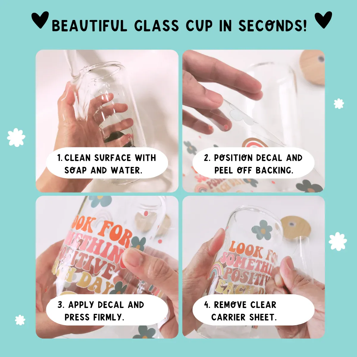 За стаклене чаше након преноса избегавајте контакт са водом високе температуре и оштрим предметима у року од 24 сата да бисте спречили љуштење шара. Приликом чишћења користите меку крпу и неутрални детерџент. Не трљајте подручје узорка челичном вуном или четкама са чврстим влакнима. Шоља се може прати ручно или чистити у нежном циклусу машине за прање судова.