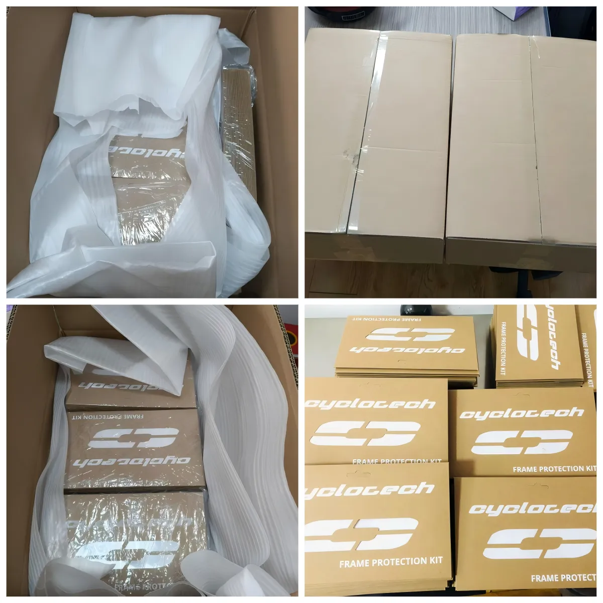 Прилагођавање комплета за бицикле постало је дефинитиван тржишни тренд за бицикле. Провидна налепница за заштиту оквира бицикла служи као основна опција, а нудимо и стилске надоградње као што су прилагођени једноставни логотипи или прилагођене боје које купци могу да изаберу. Наш провидни комплет за заштиту оквира бицикла је направљен од врхунског ПВЦ и винил материјала, са отпорношћу на временске услове као основном карактеристиком.
